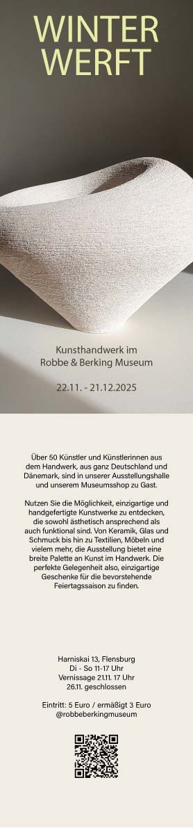 Die Winterwerft bei Robbe und Berking öffnet seine Türen am Freitag den 21.11.2025 um 17.00 Uhr. In der Verkaufsausstellung sind viele Unterschiedliche Gewerke zu sehen, seien Sie/du neugierig auf die Vielfalt. Am 14.12. werde ich anwesend sein in der Ausstellung.
